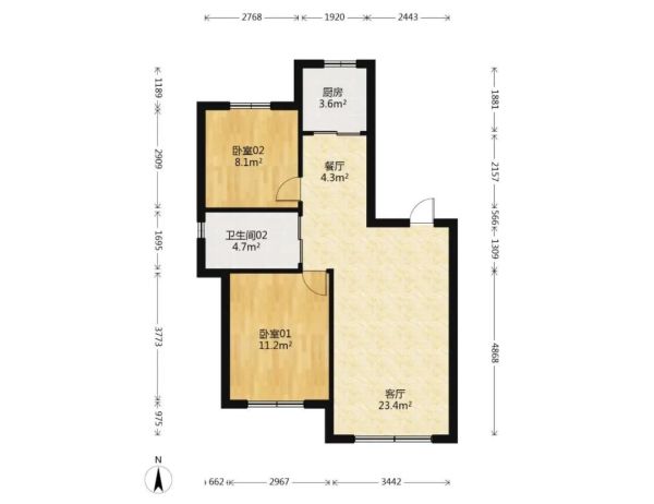 房屋戶型: 2 室1廳 1 廚1衛(wèi)