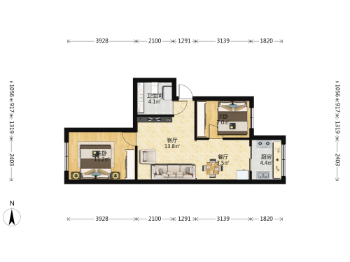 房屋戶型: 2 室1廳 1 廚1衛(wèi)
