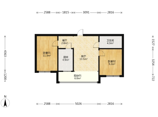 房屋戶型: 2 室1廳 1 廚1衛(wèi)