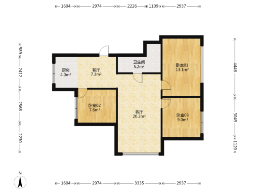 房屋戶型: 3 室2廳 1 廚1衛(wèi)