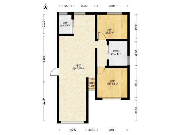房屋戶型: 2 室2廳 1 廚1衛(wèi)
