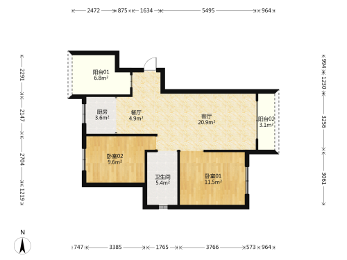房屋戶型: 2 室2廳 1 廚1衛(wèi)