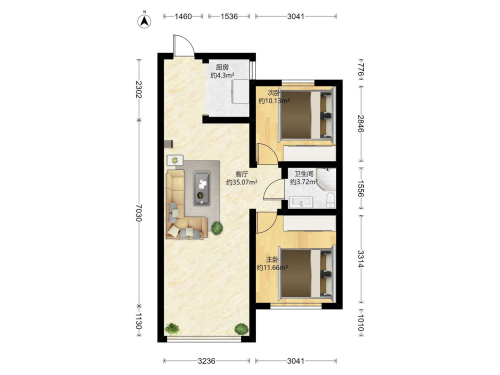 房屋戶型: 2 室1廳 -- 廚1衛(wèi)