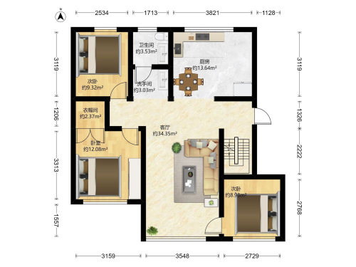 房屋戶型: 3 室2廳 1 廚1衛(wèi)