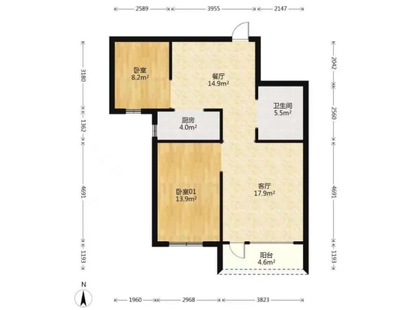 房屋戶型: 2 室1廳 1 廚1衛(wèi)