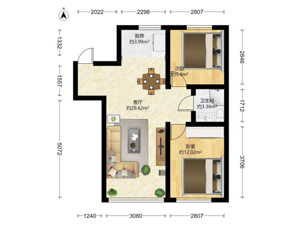 房屋戶(hù)型: 2 室1廳 1 廚1衛(wèi)