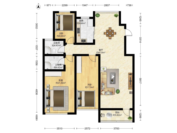房屋戶(hù)型: 3 室2廳 -- 廚2衛(wèi)