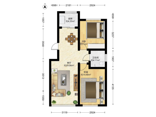 房屋戶型: 2 室2廳 1 廚1衛(wèi)